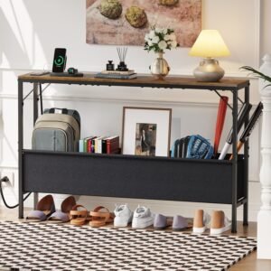 Console Tables along with Asking For Terminal as well as Storage Space Container, 47.2"Entrance Dining Table Narrow along with Energy Outlets USB Slots, Chair Dining Table Responsible For Couch, Corridor Dining Table for Hall, Residing Space, Afro-american