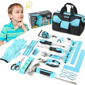 SHALL 26-Piece Kids Size Tool Set, Real Tools Kit for Kids with 12″ Tool Bag, Safety Certified Children Learning Tool Set with Hand Tools for Boys & Girls Age 6+, DIY Building, Woodwork & Construction